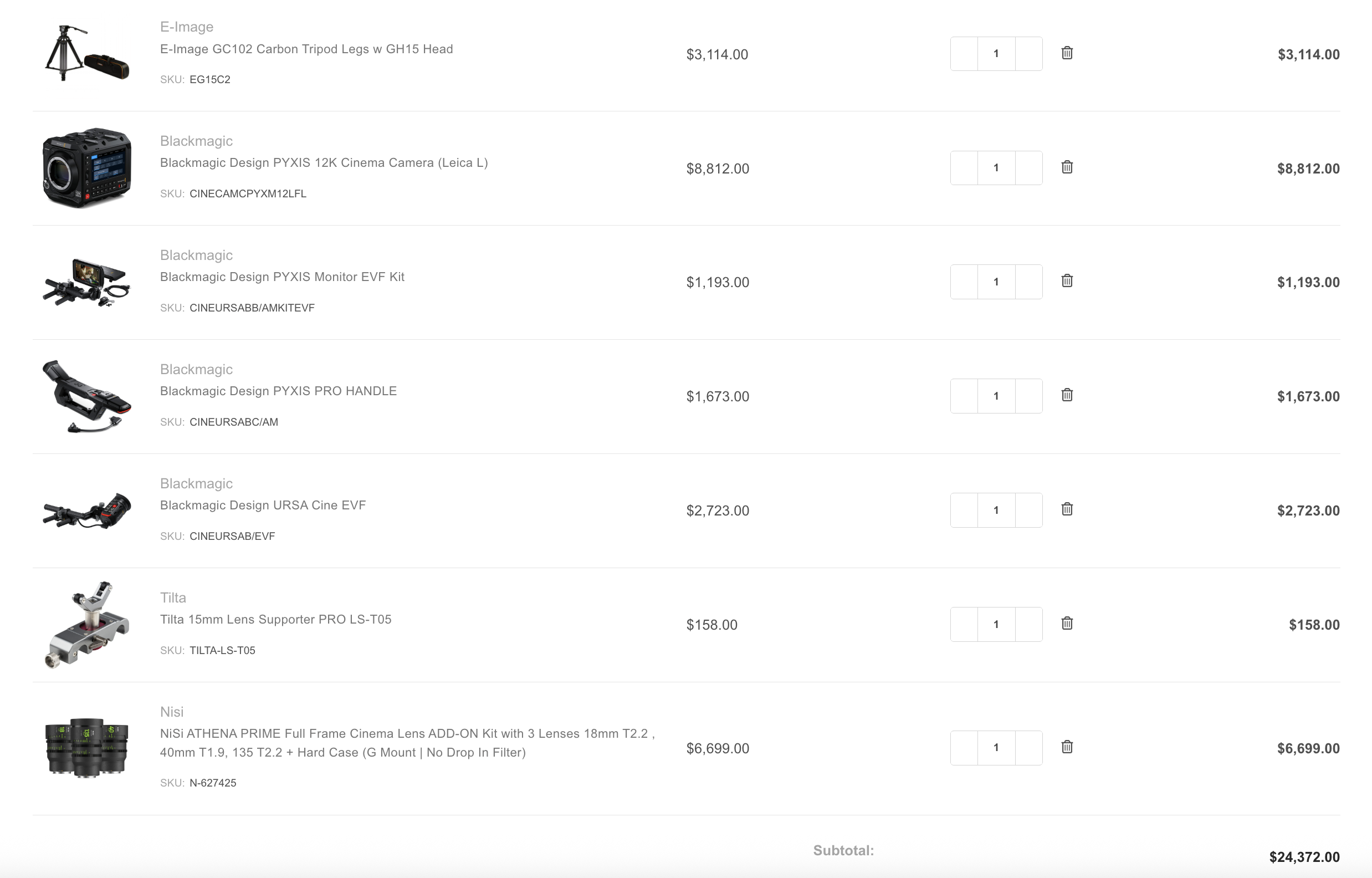 That’s not an exhaustive list and doesn’t even include the cage for the camera, V-mount batteries and holders and, and, and….